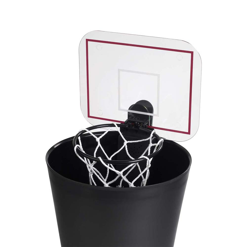 Acest coș de baschet electronic este echipat cu o plasă și un panou transparent, care vă ajută să vă orientați mai ușor. Sunetul său este alimentat de două baterii alcaline obișnuite, pe care le-am inclus în set.