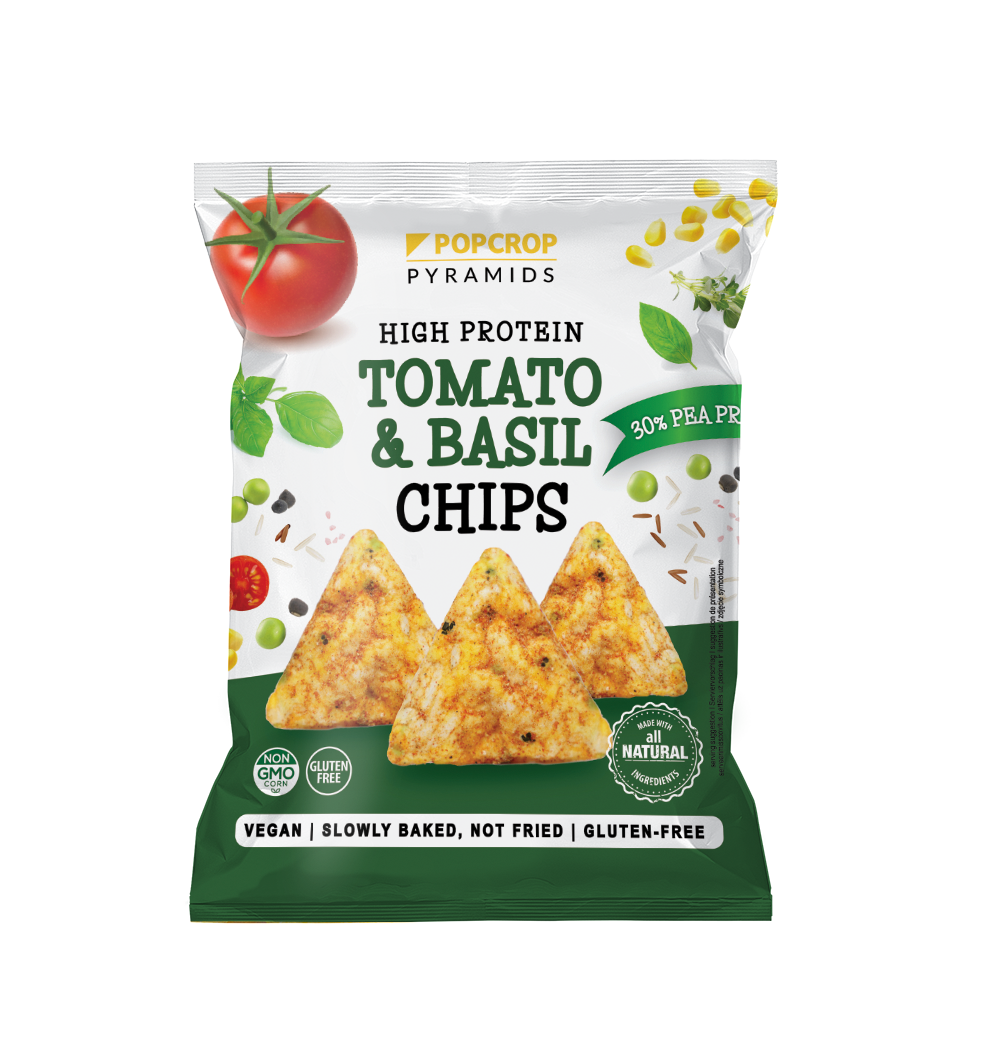 Chipsuri Proteice de Mazare cu Aroma de Rosii si Busuioc 60G Popcrop