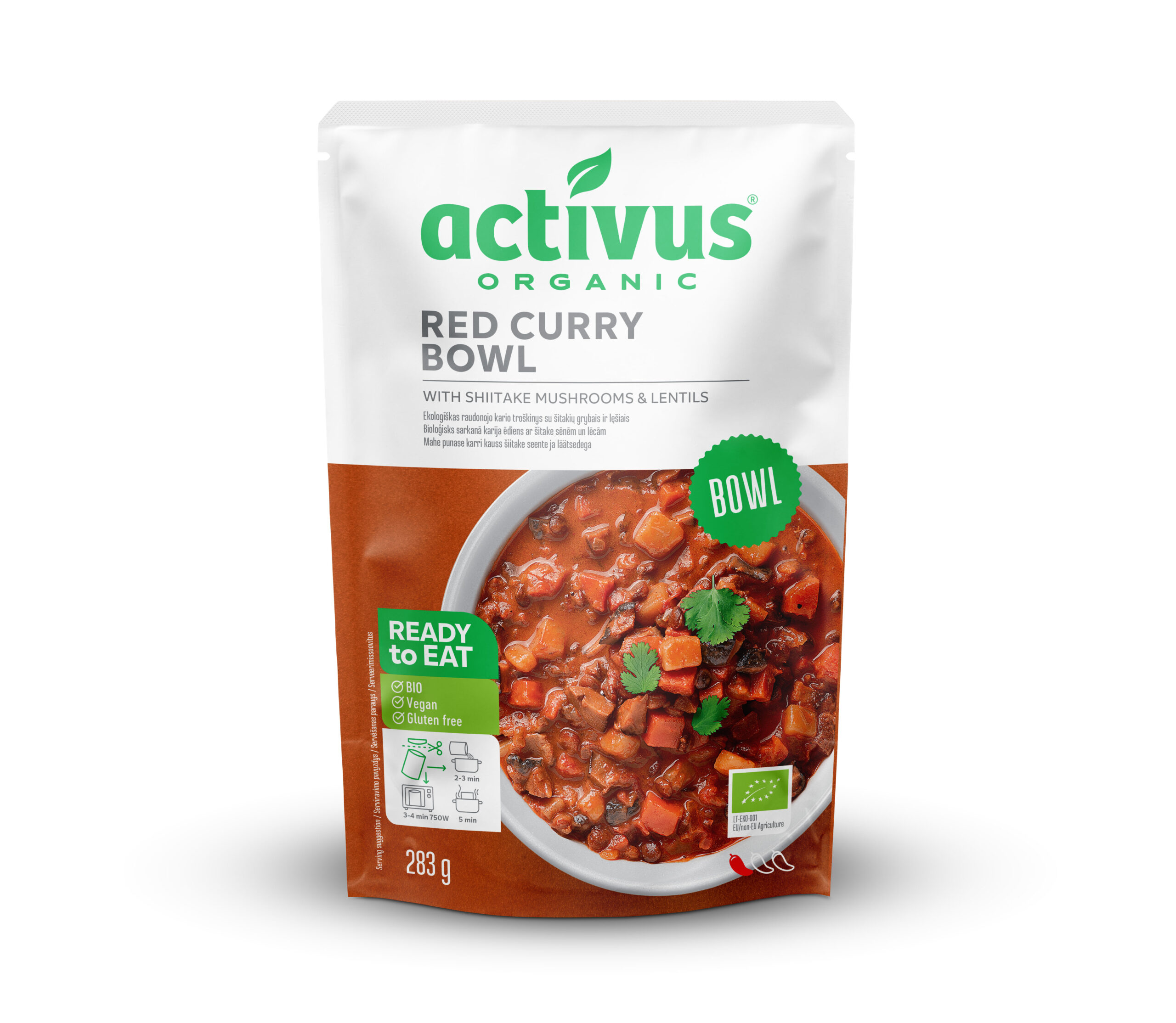 Curry Rosu cu Ciuperci Shiitake si Linte 283g ActivusAuga Red Curry Bowl este o explozie de arome indraznete si usor picante, o adevarata calatorie culinara in inima Asiei. Lintea verde aduce un strop de savoare nutty, usor piperata, care se imbina perfect cu gustul umami al ciupercilor Shiitake. Realizat din ingrediente organice, acest curry fara gluten este sarac in zaharuri, nu contine conservanti adaugati si este potrivit pentru o dieta vegana.Savori exotice, texturi bogate: Bucatelele de ca