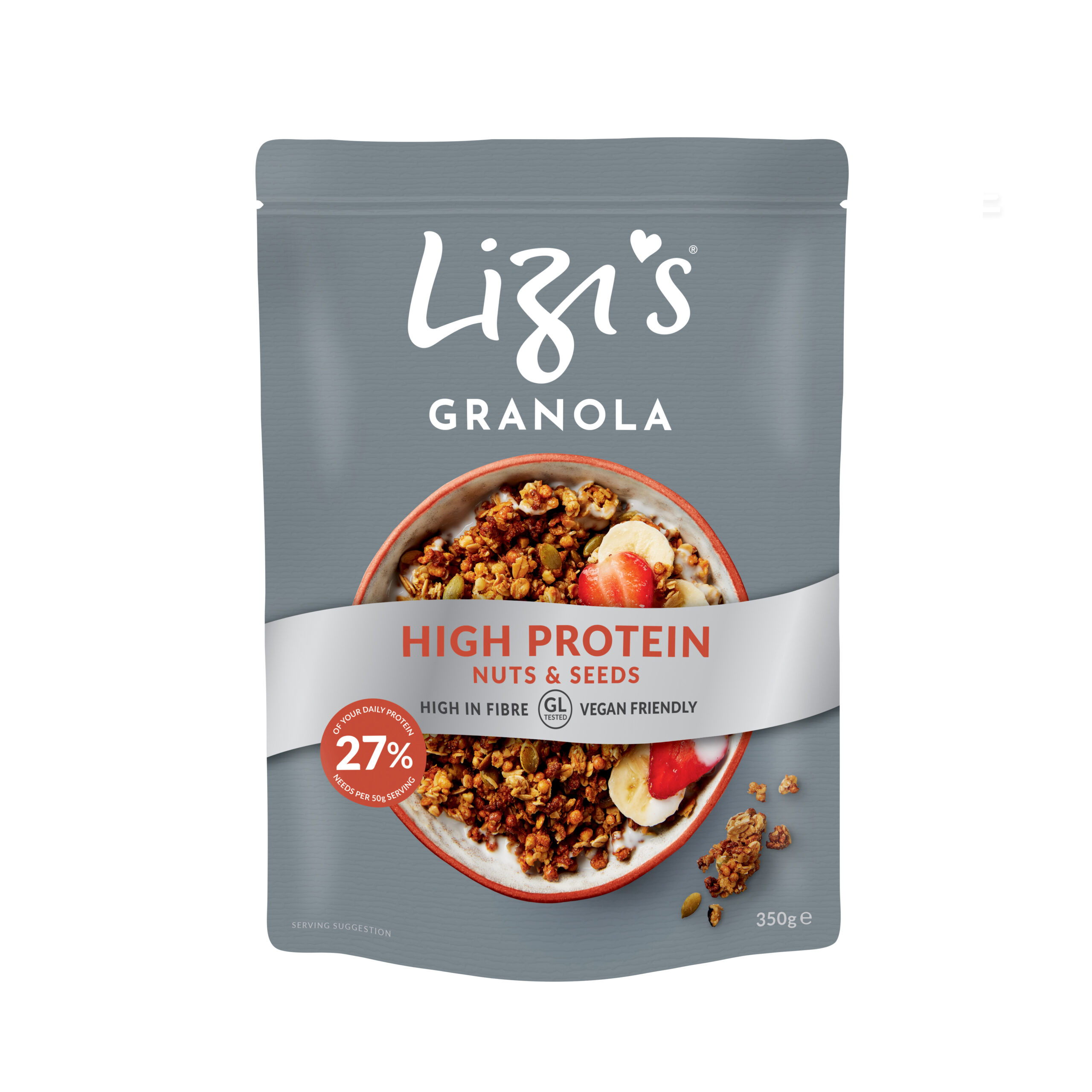Granola bogata in proteine 350G Lizi’sGranola High Protein de la Lizi’s este perfecta pentru cei care duc vieti active. Potrivita pentru cei ce adopta un stil de viata vegetarian, proteina vegetala este combinata cu ovazul perfect rumenit caracteristic Lizi’s, nuci, migdale si seminte de dovleac. Aceasta granola iti ofera un inceput bogat in fibre si proteine pentru ziua ta.O cereale bogata in proteine care indeplineste atat gustul, cat si necesarul de macronutrienti important pentru tine.G