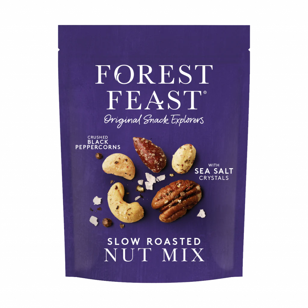 Mix de Nuci cu Sare de Mare si Piper Negru 120g Forest Feast Descoperiti mixul preferat al tuturor de la Forest Feast – nuci alese cu grija, rumenite lent si condimentate cu sare de mare recoltata manual si boabe de piper negru zdrobite! Combina caju, migdale crocante, nuci macadamia cremoase, nuci pecan aromate si arahide Jumbo intr-o explozie de texturi si arome.Sarea de mare accentueaza gustul natural al nucilor, iar piperul negru proaspat macinat adauga o nota picanta subtila, care va v