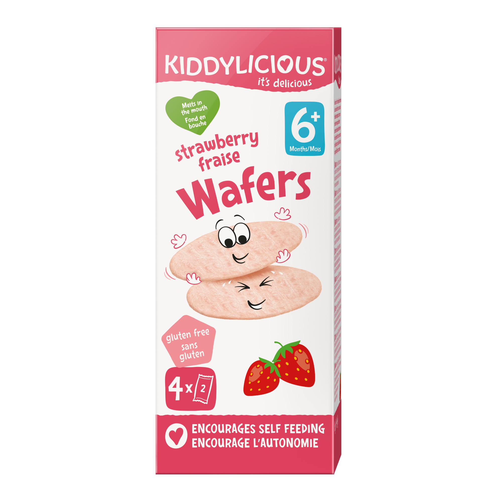 Napolitane din Orez Jasmine cu Capsuni +6luni 4*4g KiddyliciousIntrodu in alimentatia bebelusului tau gustul delicat al capsunilor cu Wafers Maxi Strawberry de la Kiddylicious! Aceste gofre premiate sunt usor aromatizate cu fragmente reale de capsuni (3,2%), oferind o experienta cu un gust delicat si natural. Fiecare are dimensiunea perfecta pentru manutele mici, fiind usor de tinut si lipsit de firimituri – ideal pentru perioada de diversificare alimentara a bebelusului tau.Caracteristici:Faina