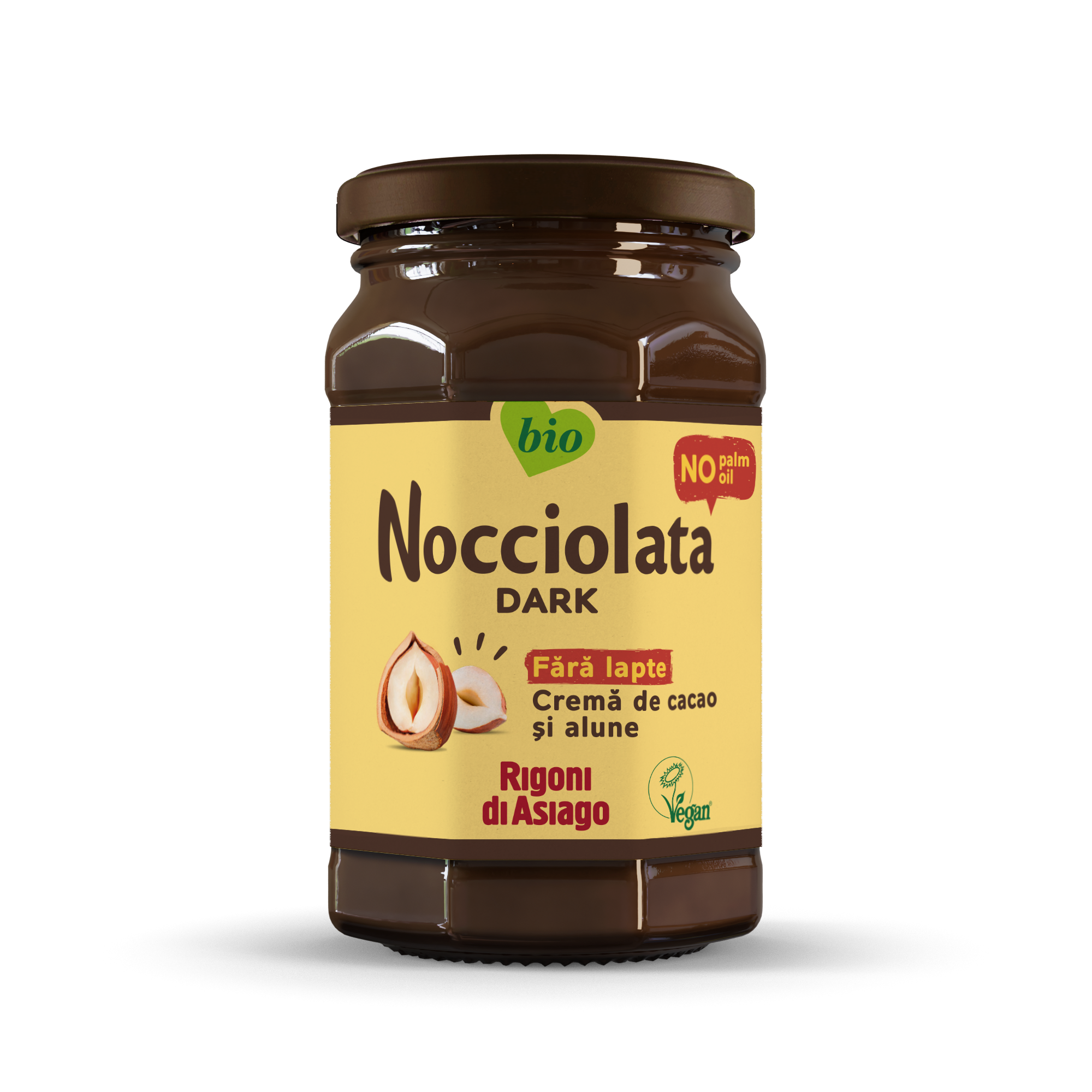 Nocciolata crema BIO cu cacao si alune de padure fara lapte 250g Rigoni di AsiagoNocciolata, deliciul organic si cremos care imbina in mod perfect aroma bogata a cacao cu savoarea delicata a alunelor de padure. Fabricata cu grija din ingrediente atent alese, aceasta crema rafinata reprezinta apogeul poftei de dulce natural si sanatos.Cu ani de cercetare si inovatie, Rigoni di Asiago a creat o reteta armonioasa si echilibrata, ce include nuci Tonda Romana de cea mai inalta calitate, cacao si unt