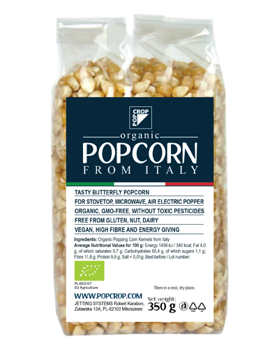 Porumb BIO Pentru Popcorn 350g PopcropGustul autentic al porumbului proaspat si calitatea superioara a ingredientelor se intalnesc in Popcorn-ul BIO Popcrop! Descopera savoarea inegalabila a floricelelor de porumb preparate in confortul casei tale si bucura-te de experienta gustului perfect, oricand doresti! Cu ambalajul de 350g, porumbul BIO Popcrop este ideal pentru utilizare in cuptor cu microunde, pe aragaz sau in masini de popcorn electrice, fiind usor de pregatit in doar cateva minute. Ind