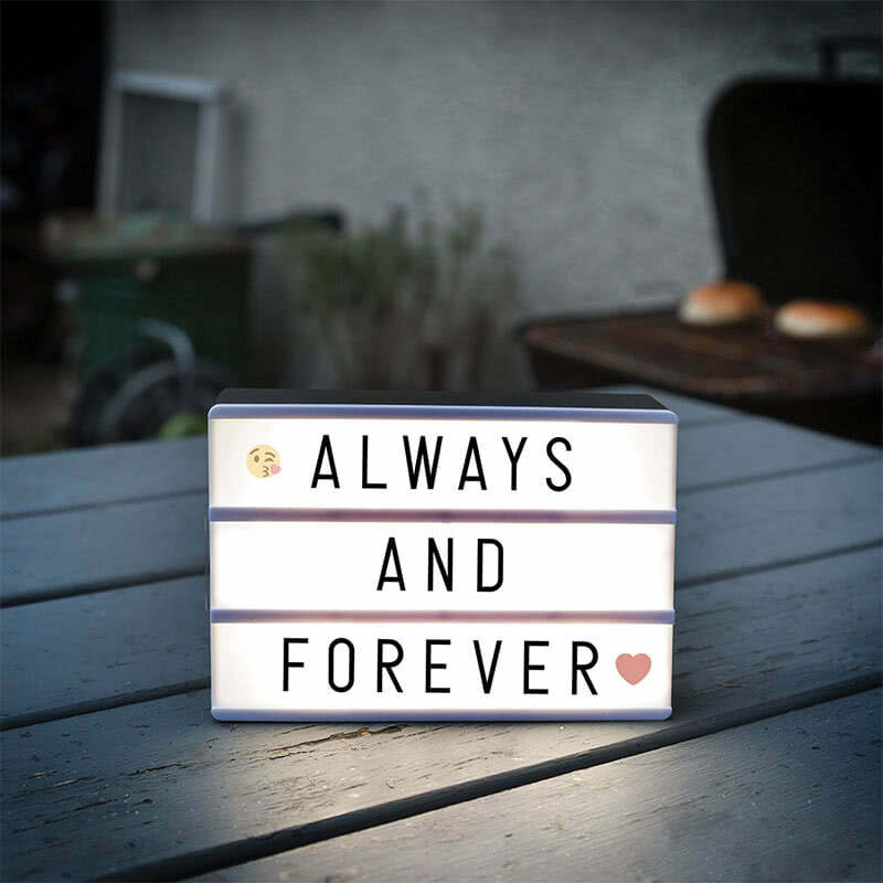Îmbăiază-ți mesajele în lumină, deoarece acesta este cel mai bun mod de a fi observate! Puteți face acest lucru cu ajutorul panoului de mesaje cu LED-uri. Acesta arată ca o cutie mică, luminoasă, pe care poți scrie un mesaj cu cele 90 de caractere incluse în set. Doar aranjează literele și simbolurile alese pentru mesajul tău pe panou și apasă butonul pentru a vedea sloganul tău strălucind într-o lumină alb-gălbuie.