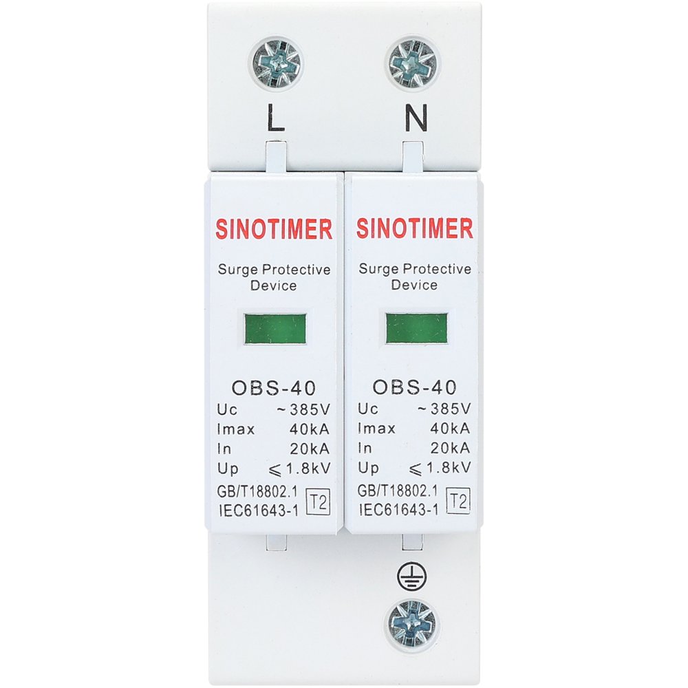 Descarcator de supratensiune AC SINOTIMER OBS-40, Tip 2, 385V, 40kA, 2 poli (L+N) OBS40-SPD-AC385V