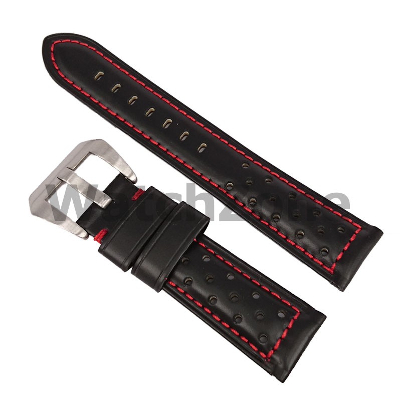 Curea Ceas Piele Neagra Cusatura Rosie 20mm 22mm 24mm