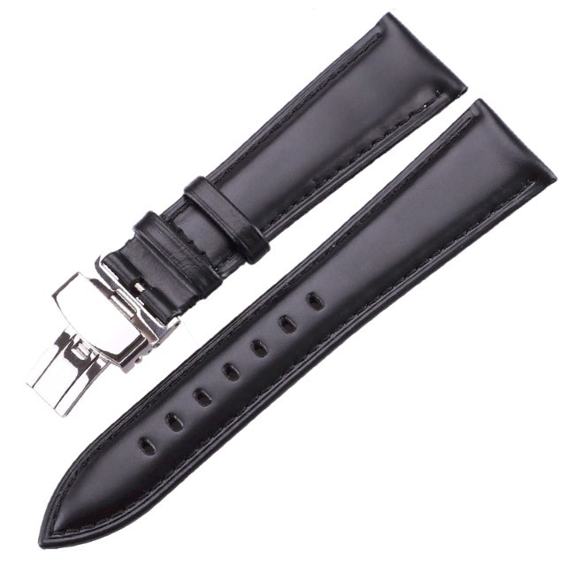 Curea ceas piele neagra DEPLOYANT 12mm 14 mm 16 mm 18 mm 20 mm 22 mm 24 mm C049