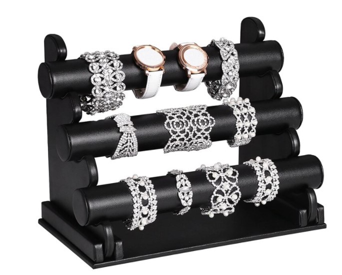 Stativ prezentare, expunere brățări – piele ecologică Neagra sau Alba