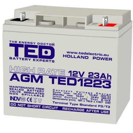 Acumulator AGM VRLA High Rate F3 / T3, 12V, 23Ah TED003348 T3