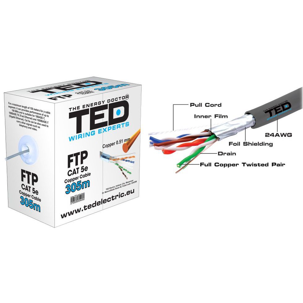 Rola Cablu FTP CAT5E cupru Ted / 305ml Fluke Test passed TED002396