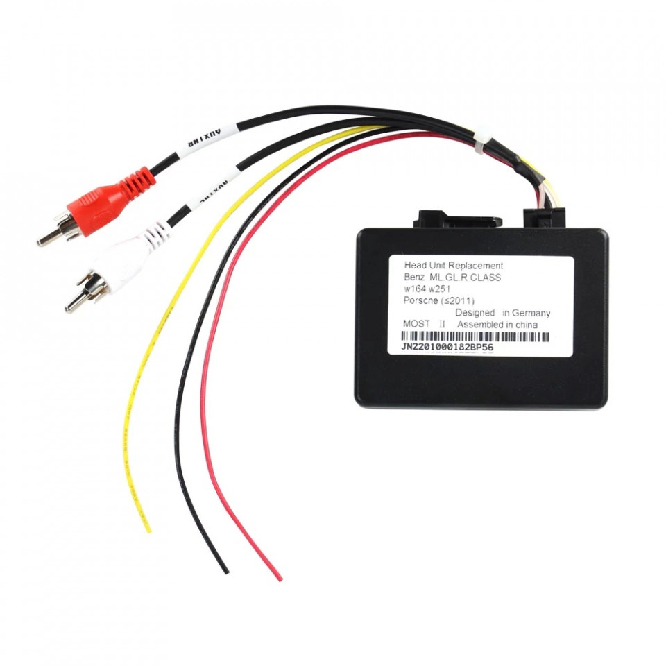 Decodor necesar pentru modelele Mercedes ML W164, GL X164, R-Class W251, B-Class W245 și Porsche Cayenne care au sistemul audio prin fibră optică.