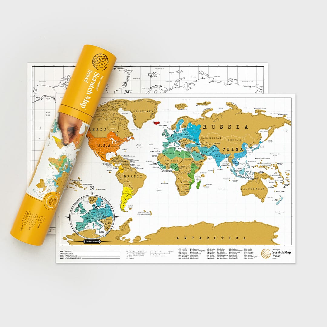 Harta mondială mini scratch oferă un mod neconvențional și interesant de a marca locurile pe care le vizitezi. Pur și simplu șterge stratul de sus cu un ban și culorile vii și detaliile geografice detaliate ale teritoriului vizitat vor apărea dedesubt. Întoarce harta de zgârietură pe partea opusă pentru a-ți planifica următoarea călătorie direct pe schița goală a hărții.
