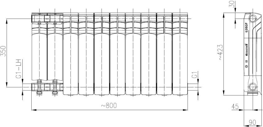 Radiator (calorifer) din aluminiu Fornello G350F 10 elementi inaltime 350 mm