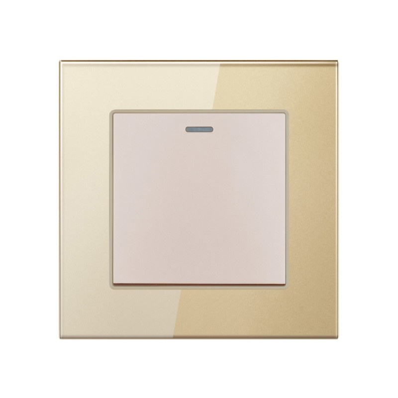 Intrerupator Cap Scara Cu Panou din Sticla Securizata Techstar® TGS 01, 220V, 16A, 86 x 86 mm, Auriu, cu 1 Modul