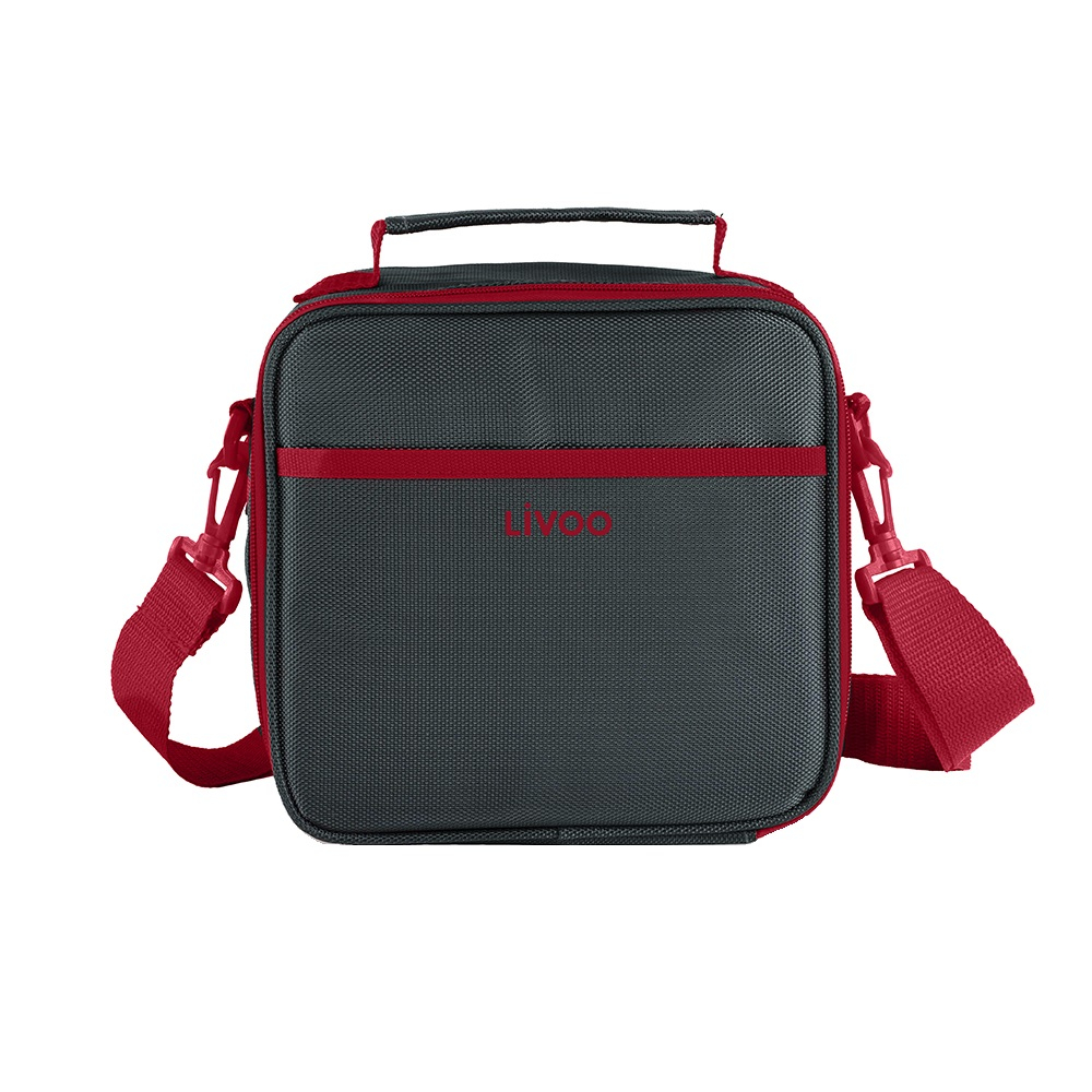 Geanta termoizolanta pentru pranz Livoo SEP126R 3 cutii ermetice 580 ml Geanta din poliester cu compartiment cu fermoar si buzunar frontal Curea de umar reglabila si detasabila Se pastreaza la rece pana la 6 ore Compatibila pentru mașina de spalat vase, cuptor cu microunde si congelator Izolatie: aluminiu si spuma EPE de 5 mm Dimensiunile geanta de transport: 22 x 11 x 19,5 cm Dimensiunile cutiilor: 19,5 x 11,2 x 5 cm