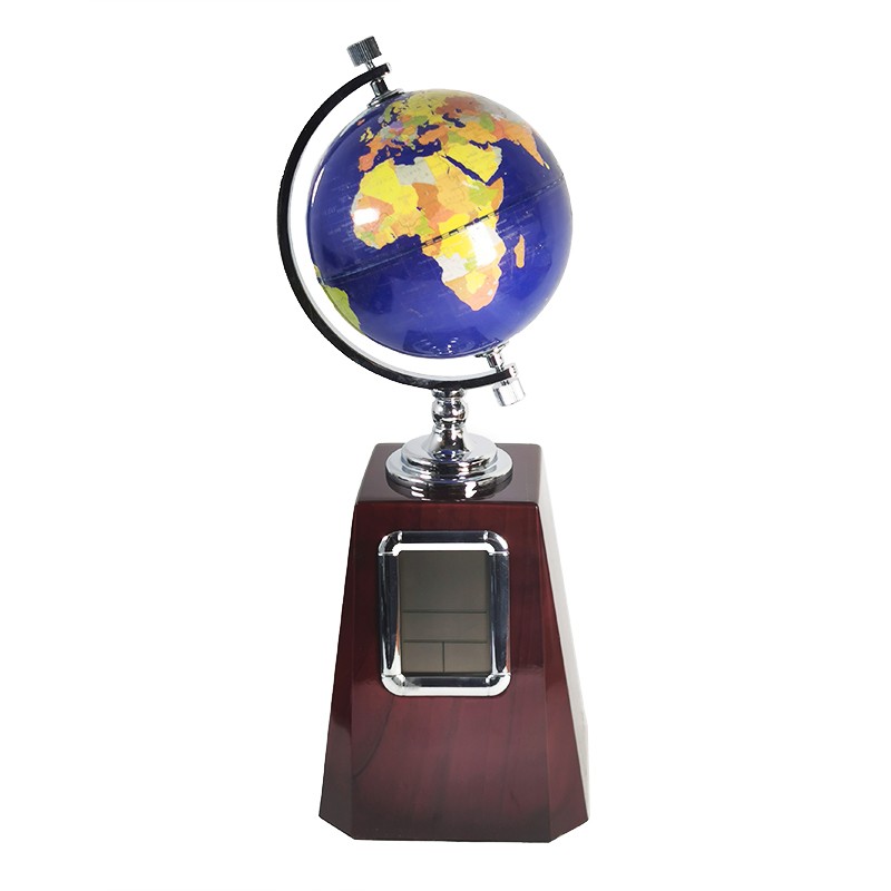 Ceas de birou realizat din lemnGlob pamantesc rotativMecanism Quartz, display digita…