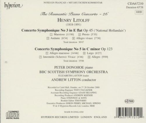 Litolff: Concerto Symphonique No 3 In E Flat Major / Concerto Symphonique No 5 In C Minor (First Recording)