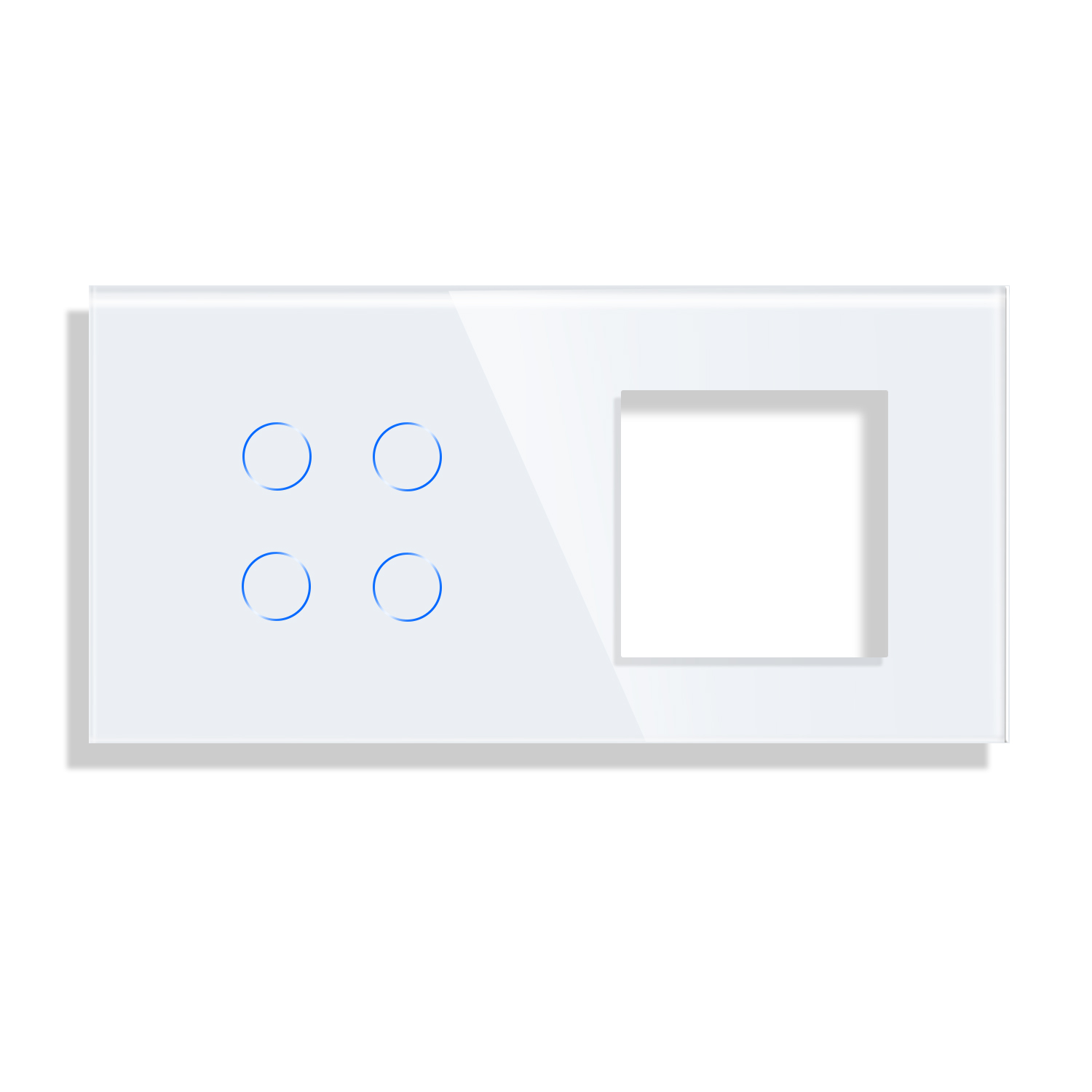 Panou intrerupator cvadruplu si priza simpla LUXION din sticla, compatibil cu modulele Luxion. Produsele LUXION se caracterizeaza printr-un design compact, elegant si minimalist. Sunt practice, realizate din materiale de calitate si durabile si ofera utilizare si confort casei tale.