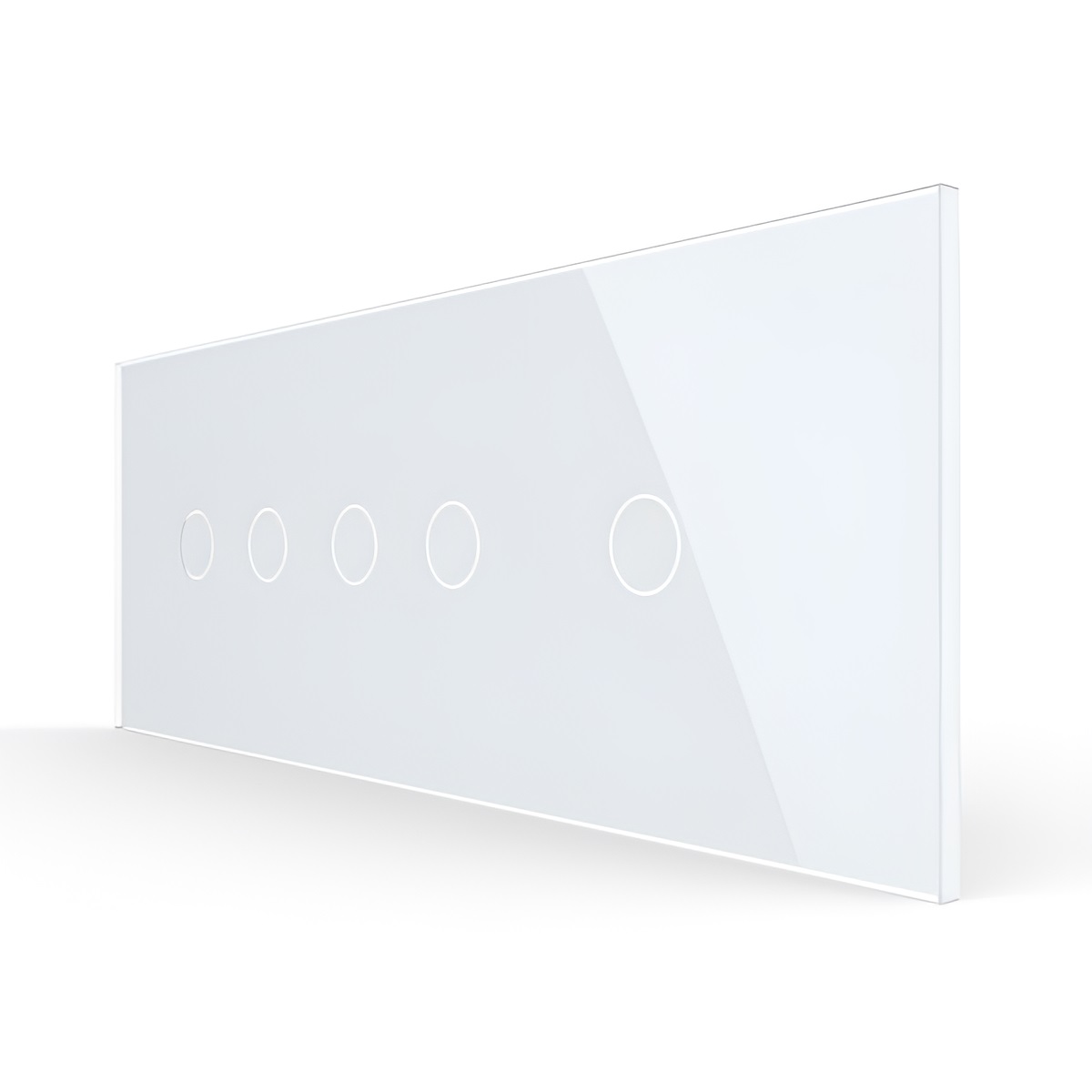 Panou intrerupator dublu + dublu + simplu cu touch Livolo din sticla, standard italian, cu 6/7 module, din sticla crystal securizata, termorezistenta, compatibil doar cu modulele Livolo. Este rezistent la zgarieturi, umezeala, praf si ofera casei tale un plus de eleganta si rafinament.