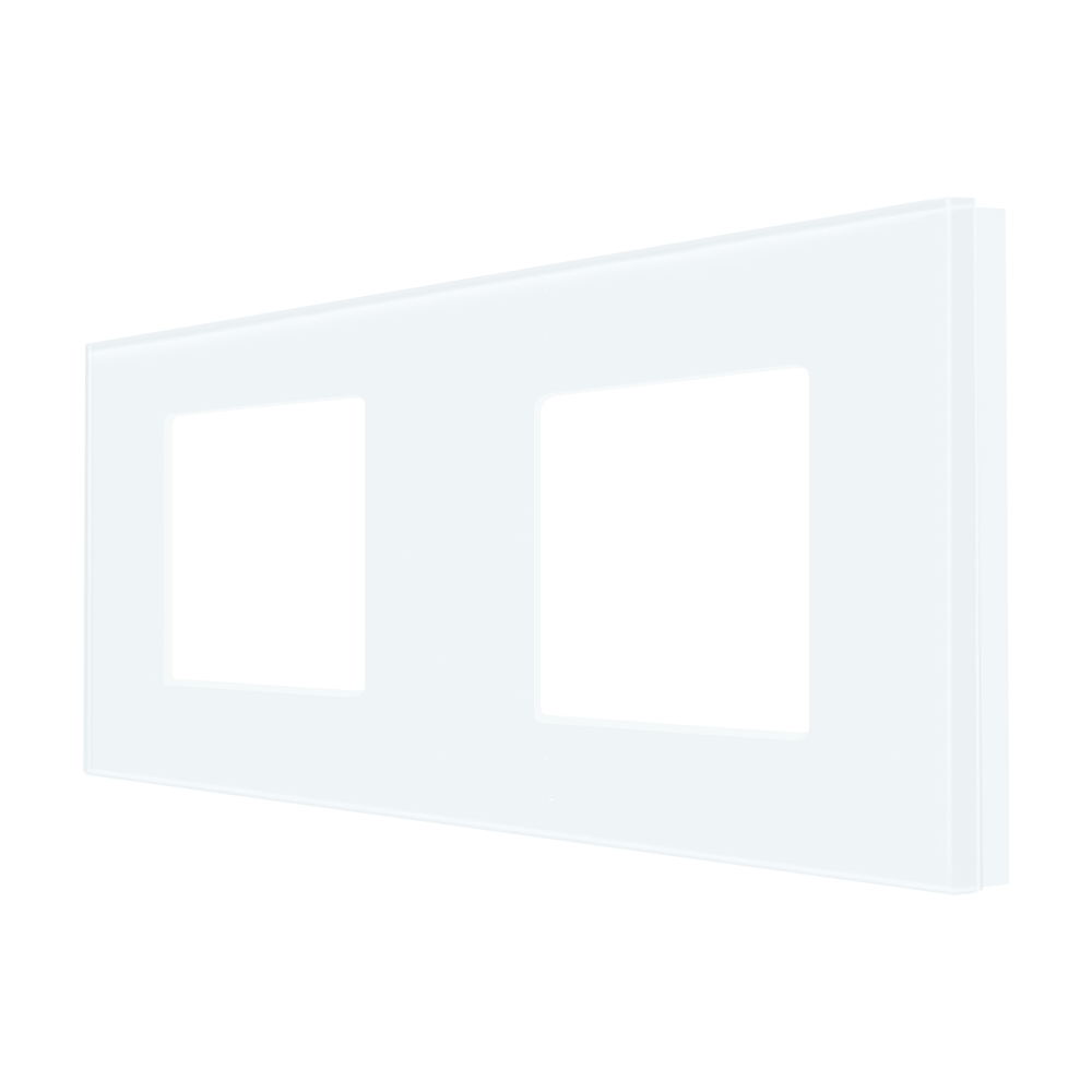 Rama dubla Luxion, din sticla securizata, compatibila modulele mecanice Luxion, cu prizele Luxion cat si cu cele media: TV, TV satelit, telefon, audio, USB, internet, HDMI. Compatibil doar cu modulele LUXION