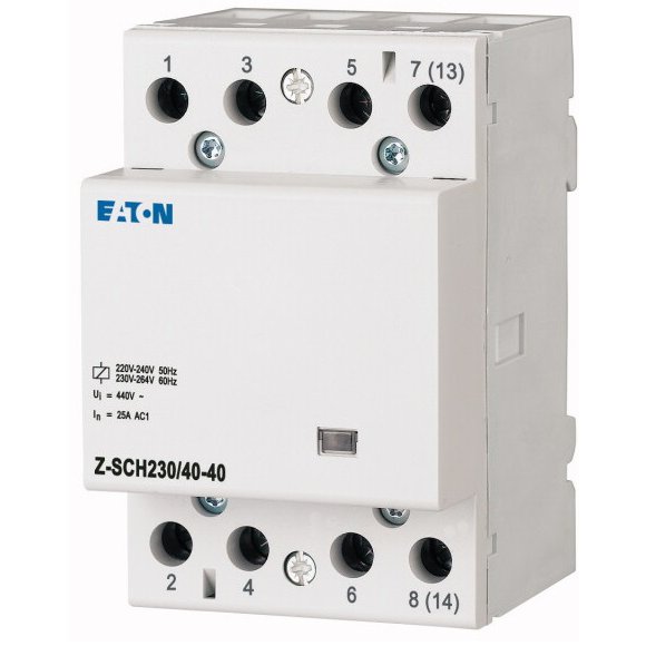 Produs: Contactor Eaton Z-SCH Cod Model: Z-SCH230/40-40 [Ie] Curent nominal: 40 A Tensiunea nominală de funcționare (Ue): 440 V AC Tensiunea nomina