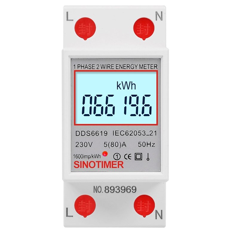 Contor monofazat de energie electrica, Sinotimer, 230V AC 50Hz, 5(80)A, ecran digital LED iluminat, DDS6619-006