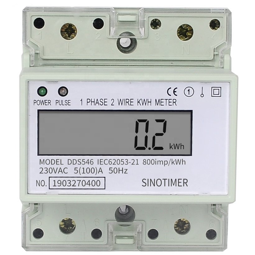 Contor monofazic de energie electrica, Sinotimer, 230V AC 50Hz, 5(100)A, ecran digital LED, DDS546