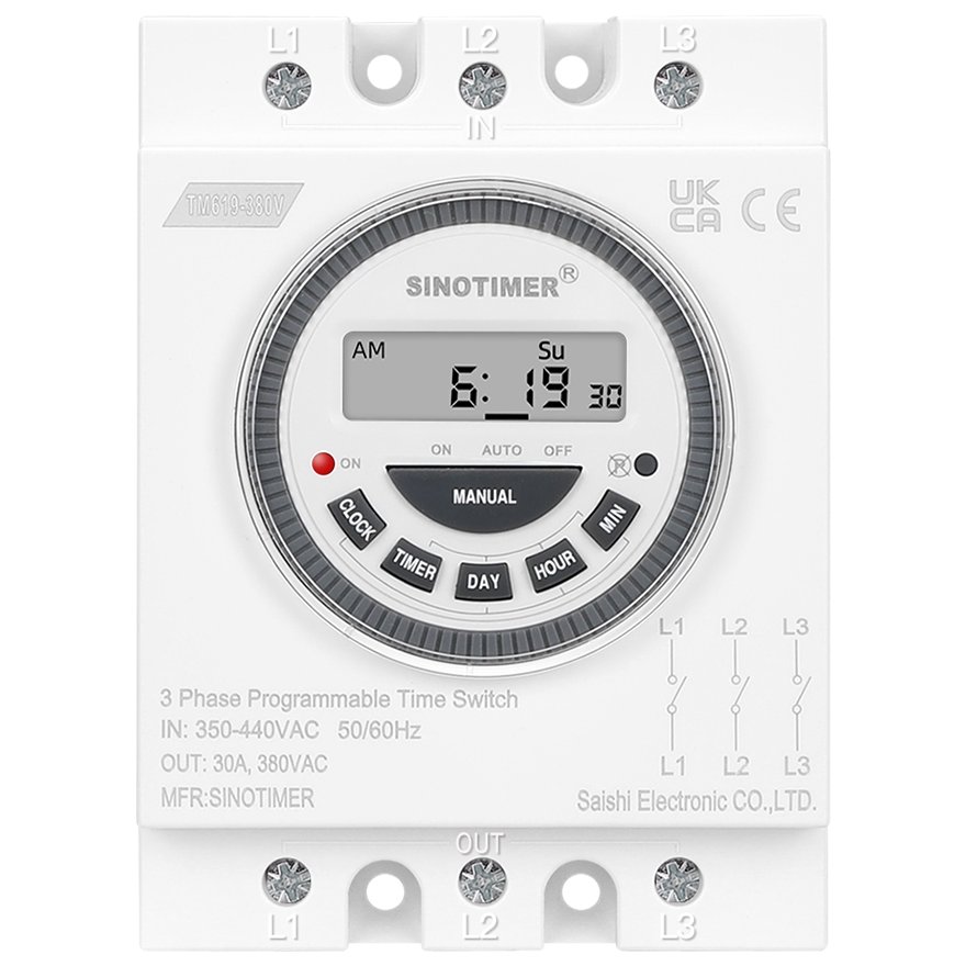 Siguranta automata electrica digitala, Sinotimer, temporizator, intrerupator, programabila, 380V, 30A, TM619-380V-30A Functii: 1. Afisare ceas (fo