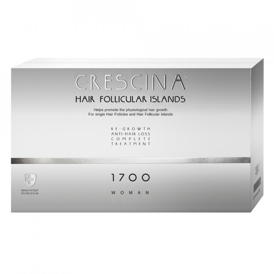 Crescina Follicular Islands este un tratament dermato-cosmetic complet care contine ambele tipuri de fiole intr-o singura cutie. RE-GROWTH Hair Follicular Islands (fiole brune) contin nucleul Crescina Re-Growth (cisteina, lizina, glicoproteina si Stem-Engine) care ajuta la stimularea cresterii fiziologice a parului si complexul special dezvoltat pentru Insulele Foliculare Capilare (Glicogen, Glutamil-amido-etil-indol, Lupinus albus, Prolina, Extract de Triticum vulgare + Glicina max +