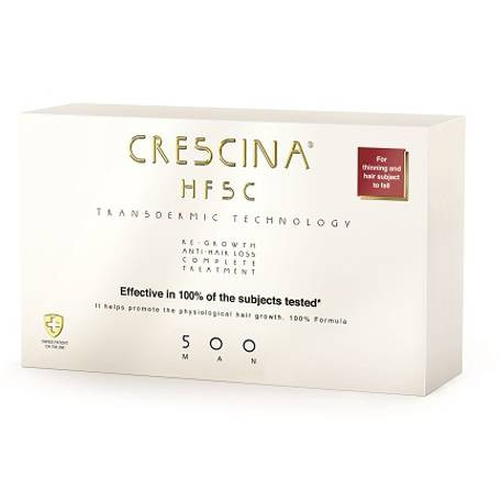 Crescina Transdermic Re-Growth HFSC și Crescina Transdermic Anti-Hair Loss este un tratament dermato-cosmetic complet de uz topic care conține ambele tipuri de fiole într-o singură cutie. Crescina Transdermic Re-Growth HFSC (fiole de culoarea chihlimbarului): Este un produs dermato-cosmetic cu aplicare topică care ajută la stimularea creșterii fiziologice a părului; Formula conține: Complexul Re-Growth (cisteină, lizină, glicoproteină), Complexul HFSC (Stem-Engine), noul complex de stimulare a