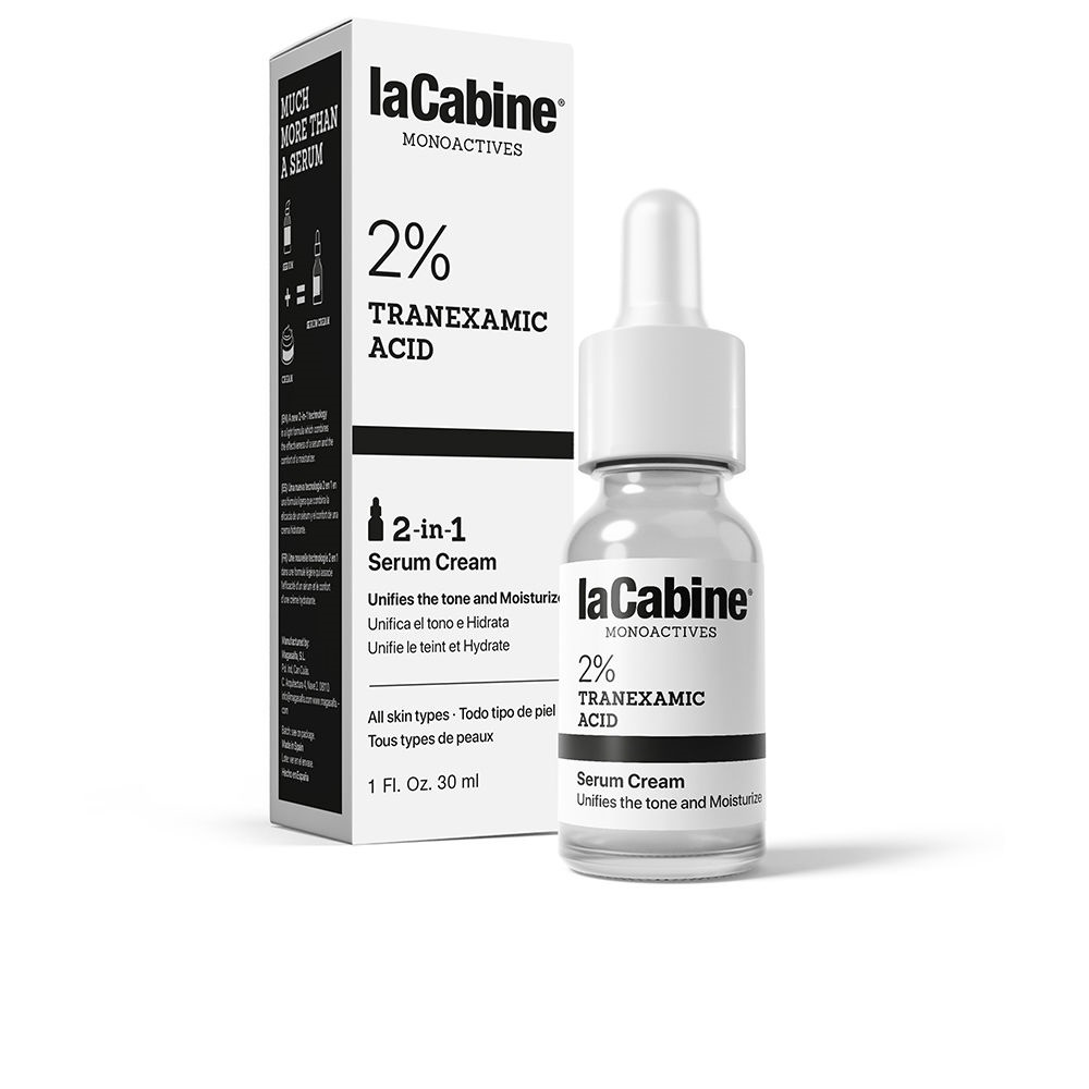 Ser-crema pentru pete pigmentare cu 2% Acid Tranexamic Monoactives de la La Cabine este un tratament inovator, proiectat să abordeze și să amelioreze provocările pielii hiperpigmentate. Acidul tranexamic, un derivat puternic al aminoacidului lizină, joacă un rol esențial în acest produs, oferind soluții eficiente pentru un ten mai uniform și radiant. Beneficiile cheie ale Ser-cremei cu 2% Acid Tranexamic includ: Reducerea Hiperpigmentării: Acidul tranexamic targetează și inhibă procesele care