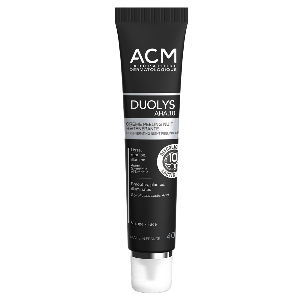 Crema peeling regeneratoare de noapte Duolys AHA.10 de la ACM este un pas esențial în rutina de îngrijire a pielii care își dorește o transformare vizibilă în timpul somnului. Formulată cu 10% acizi AHA – o combinație echilibrată de acid glicolic și acid lactic – această cremă acționează blând, dar eficient, pentru a exfolia suprafața pielii, eliminând celulele moarte și stimulând procesul natural de regenerare celulară. Dimineața, pielea este vizibil mai fină, mai uniformă și cu un aspect