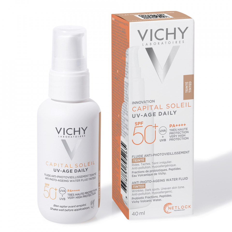 Este un produs ce ofera protectie avansata impotriva razeolor UVA si UVB, actionand in acelasi timp asupra semnelor deja existente ale foto-imbatranirii tenului (riduri, pete pigmentare) si oferind tenului o nuanta uniforma. Cu actiune impotriva foto-imbatranirii tenului. Pentru persoanele ce isi doresc o protectie solara, impreuna cu o protectie impotriva foto-imbatranrii si poluarii. Protectie impotriva radiatiilor UVA, UVB si UVA lungi, cat si impotriva poluarii. Corectie progresiva: