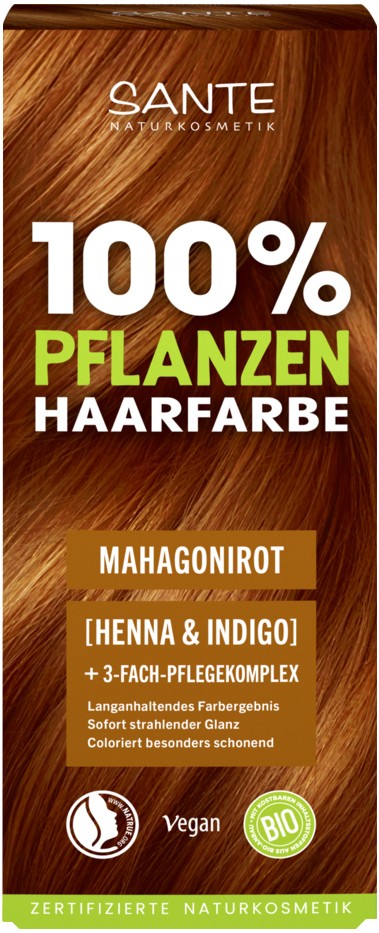 Vopsea BIO pentru păr Roșu Mahon – Sante, 100% vegetală, fără amoniac (100g)