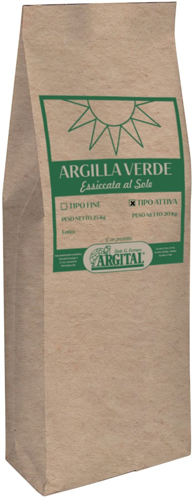 Argilă verde activă, pentru uz intern, 20 kgPreț: 23.8 lei/kg, TVA inclusProducator: Argital, ItaliaDistribuitor in Romania: Pronat srl