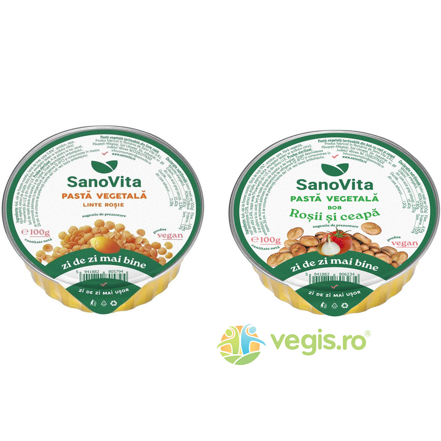 Pachet Pasta Vegetala Tartinabila din Linte Rosie 100g + Pasta Vegetala din Bob cu Rosii si Ceapa 100g