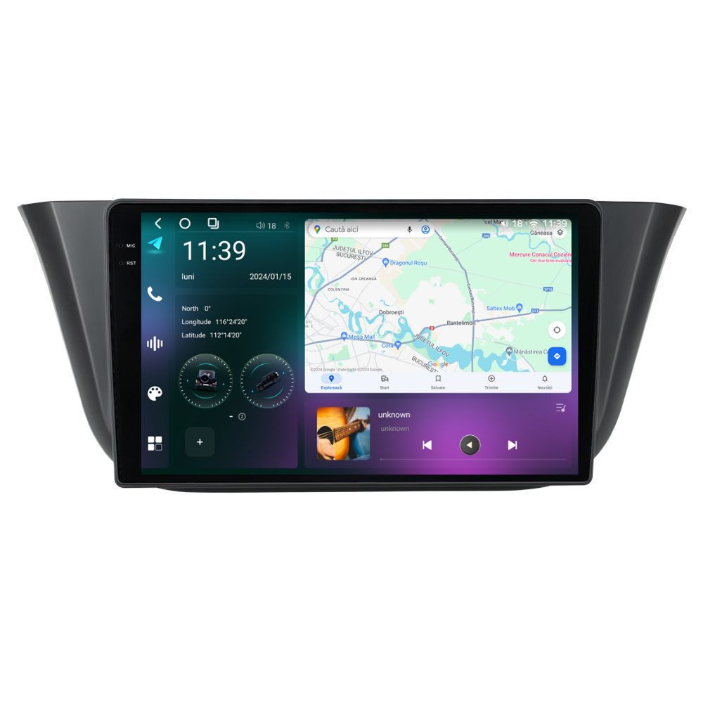 Sistem de operare: Car Android 14 cu meniu în peste 60 de limbi (inclusiv limba română) Procesor: Octa Core UIS7870S 2.7Ghz Memorie internă: 12GB RAM + 256GB stocare (extensibilă prin 3 sloturi USB de maxim 64GB) Display: Touchscreen 9.5 inch QLED 2K 2000×1200, multi-touch, format 16:9, cu margini curbate și tehnologie 2.5D Chipset GPS: Samsung Sirf Star IV cu 48 de canale (antenă GPS inclusă) Fast Boot: Navigația pornește instant în momentul în care se pune contactul Conectivitate: Slot SIM