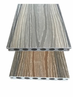 Dimensiune: 2850 x 143 x 22 5 (mm)Greutate: 19 kg/m2Duritate Rockwell: 60 (HRR)Compozitie: 60% fibra lemnoasa 30% polimeri HDPE 10% (aditivi liant agent anti UV colorant). Nu contine PVC sau alte elemente daunatoare sanatatii.Finisaj: Coextrudat cu doua fete se poate utiliza oricare din ele gri si cafeniu periat (foarte apropiat de textura naturala a lemnului)Utilizare: Placari terase marginea piscinei alei chiar pavari fatade sau elemente de gard.&n