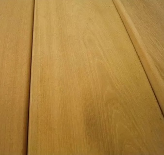 Deck Guariuba netedDimensiuni: 21x145x900-1820 mmPrindere cu suruburi aparenteLemnul este galben devenind maro lucios cand e expus la lumina. Are alburn clar delimitat. Granulatia este dreapta sau interconectata iar asperitatea este medie. Densitate la 12% umiditate: 0 69 g/cm3.Uneori este dificil sa se obtina o suprafata neteda din cauza granulatiei. Pastrati unelte ascutite. Guariúba are o rezistenta medie la ciuperci si este rezistent la daunatori; alburn demarcat.