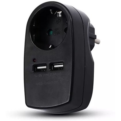Adaptor cu protectie la supratensiune 1 priza schuko, curent maxim 16A + 2 socluri USB, 2.1A curent maxim Culoare: negru Dimensiuni (mm): 107 x 54 x 7