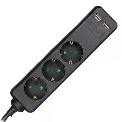 Prelungitor 3 cai + 2USB 1.5M(3G1.5MM2) negru V-TAC SKU-8776