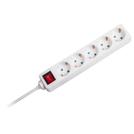 Prelungitor cu intrerupator, 5 cai, cablu 3 x 1.5 mm2, lungime 5 m Culoare: alb Curent maxim: 16A Dimensiuni (mm): 182 x 45 x 40 Greutate: 780 g