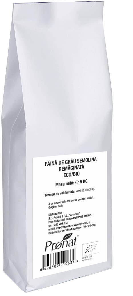 Faina bio de grau dur Semolina remacinata, 5kg Pronat