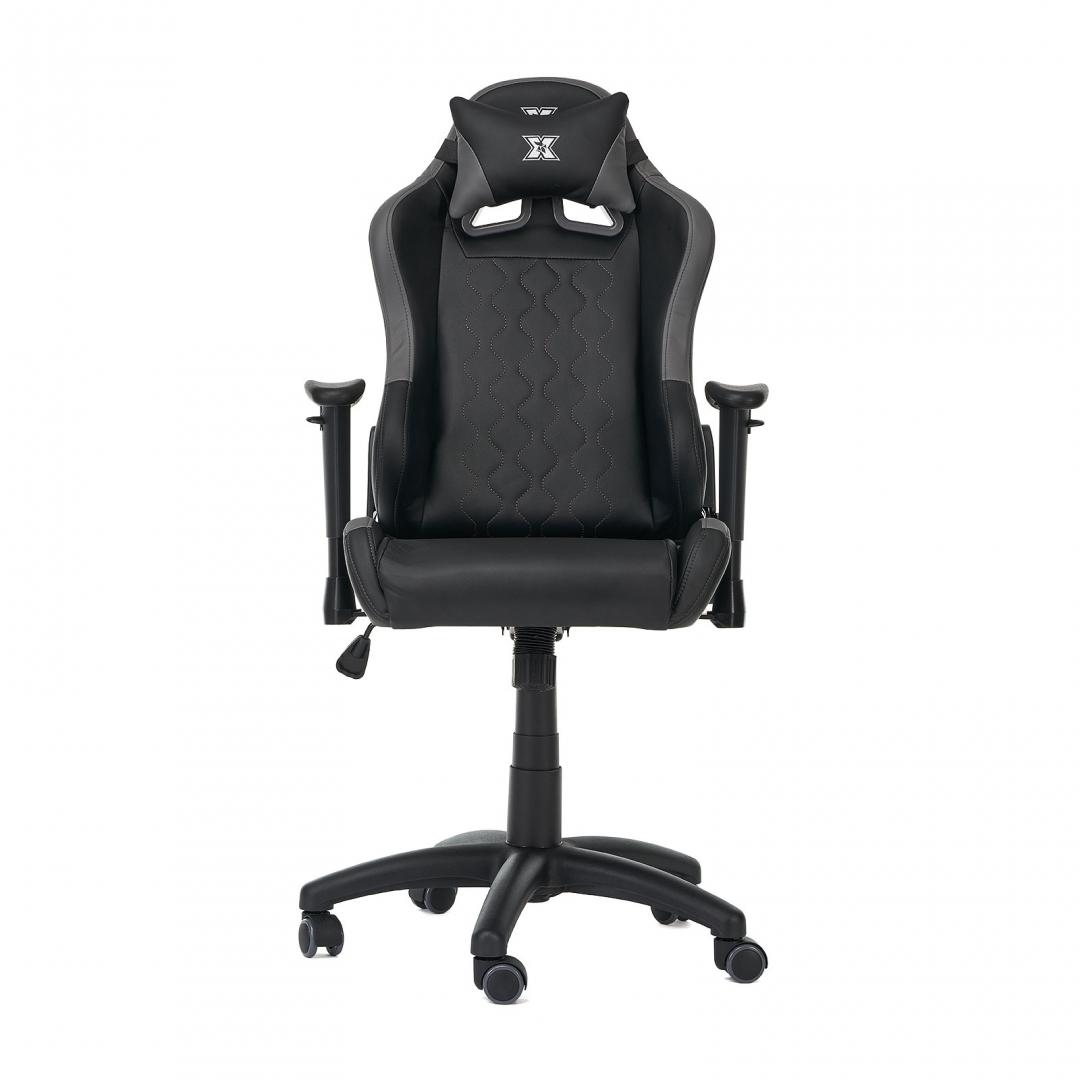 Scaun gaming X by Serioux, KIDS, ajustabil, piele sintetica, piston pe gaz clasa 2, manere reglabile, baza stea cu 5 picioare, greutate maxima admisa 100Kg, perna detasabila, negru/griGarantie: 36 luni