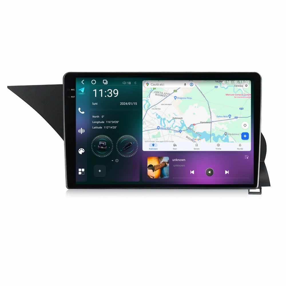 Sistem de operare: Car Android 14 cu meniu în peste 60 de limbi (inclusiv limba română) Procesor: Octa Core UIS7870S 2.7Ghz Memorie internă: 12GB RAM + 256GB stocare (extensibilă prin 3 sloturi USB de maxim 64GB) Display: Touchscreen 9.5 inch QLED 2K 2000×1200, multi-touch, format 16:9, cu margini curbate și tehnologie 2.5D Chipset GPS: Samsung Sirf Star IV cu 48 de canale (antenă GPS inclusă) Fast Boot: Navigația pornește instant în momentul în care se pune contactul Conectivitate: Slot SIM