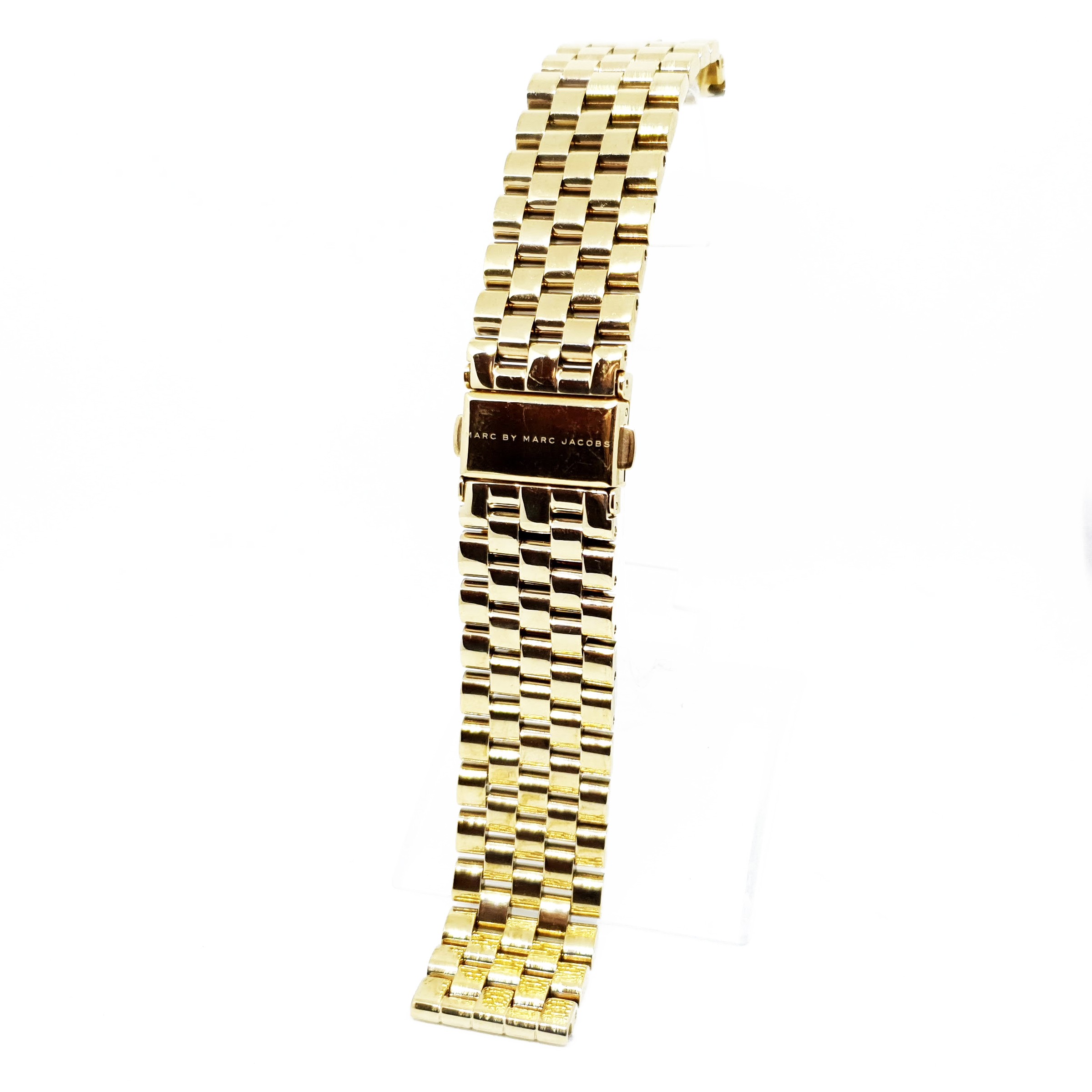 Bratara pentru ceas MARC JACOBSRealizata din otel inoxidabil, culoare aurieInchidere prin clema cu butoane lateral…
