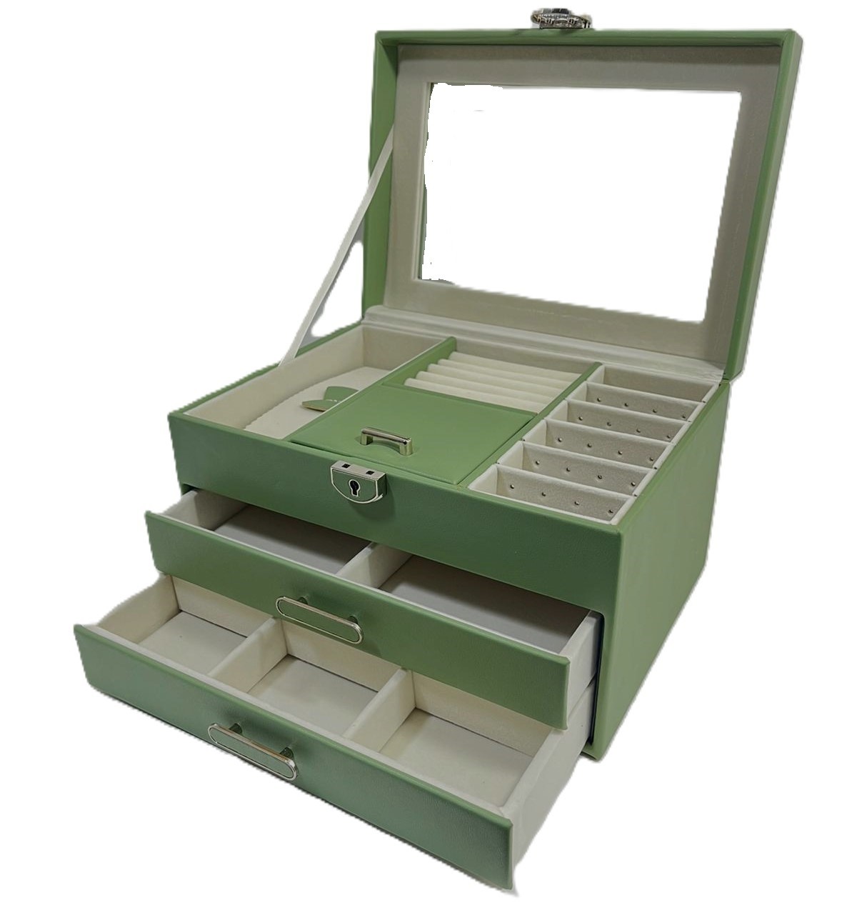 Caseta Bijuterii Lily Grey cu Oglindă | Depozitare & Organizare Elegantă | WZ1494