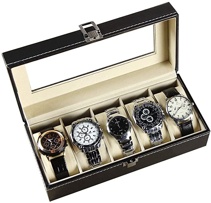 Caseta Ceasuri Cu 5 Spatii Neagra Piele Ecologica WZ1542