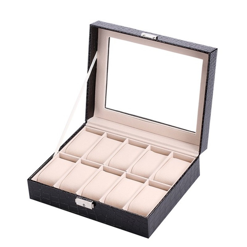 Casetă neagra / maro pentru 10 ceasuri – imprimeu crocodil